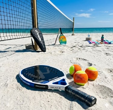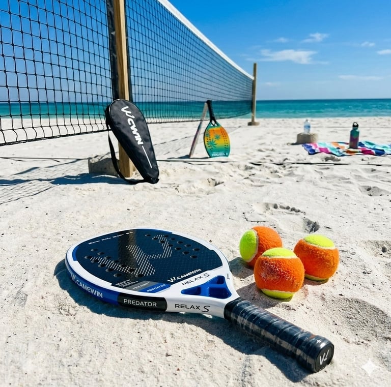 Oferecemos raquetes, bolas e acessórios para a prática de tênis de praia.
